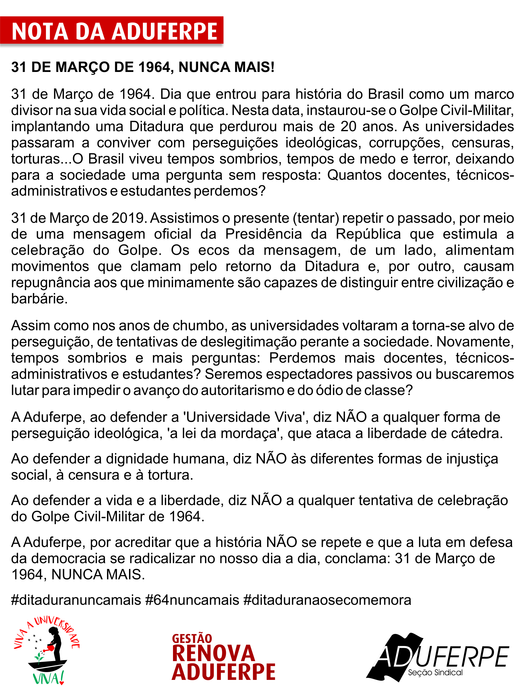 Edital de Convocação Para Eleição da Diretoria da Aduferpe Biênio 2019-2021.