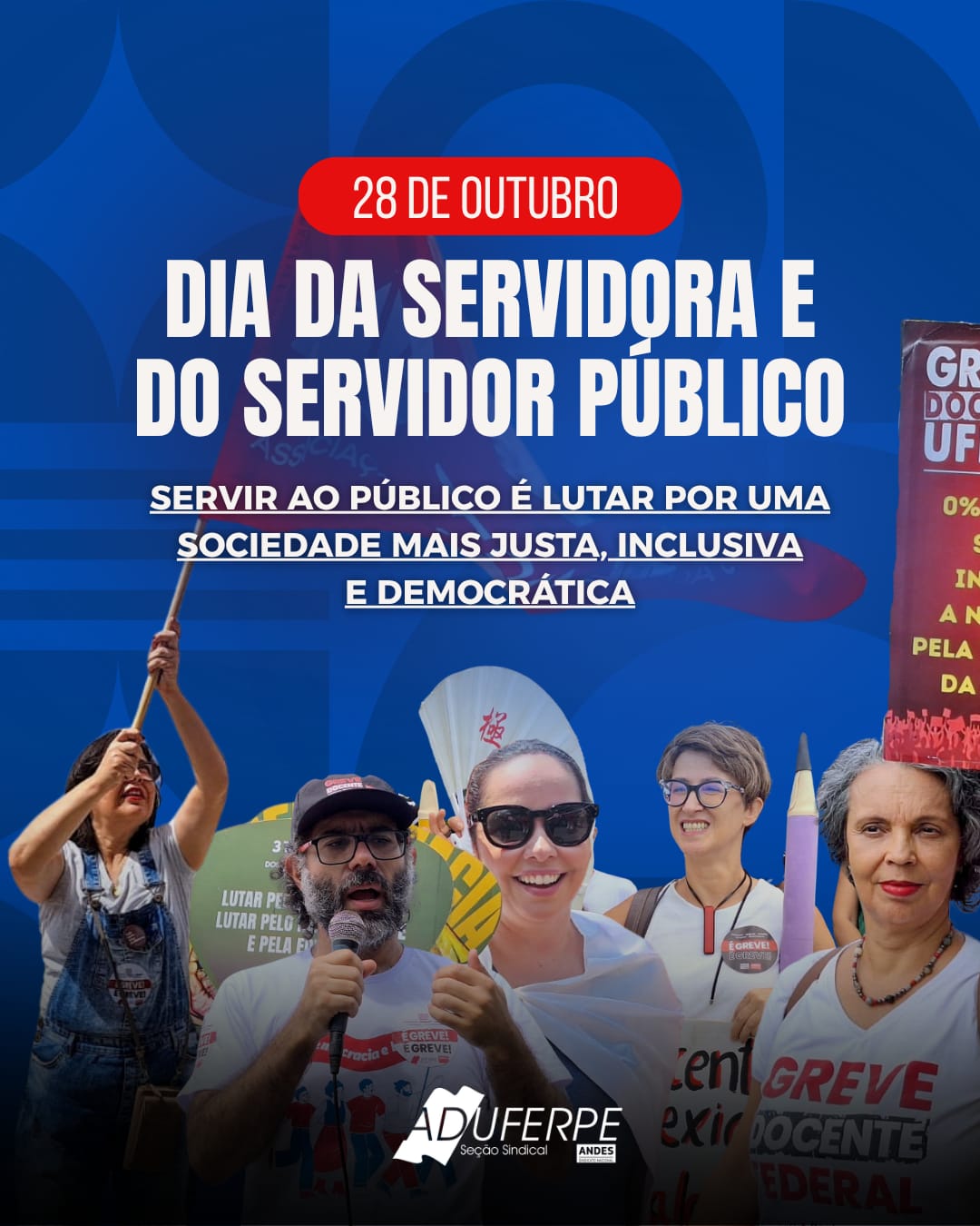 A Aduferpe saúda as/os colegas pelo Dia da Servidora e do Servidor Pública/o, celebrado nesta terça-feira (28). Nosso reconhecimento pelo serviço de excelência que prestam, mesmo diante de tantos desafios.