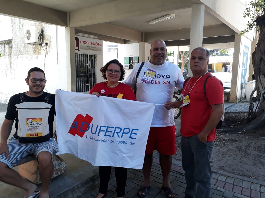A delegação da ADUFERPE, eleita na 363a Assembleia de nossa seção sindical, composta por 5 integrantes, participou entre os dias 28/06 e 01/07 do 63° CONAD, realizado em Fortaleza (CE).
