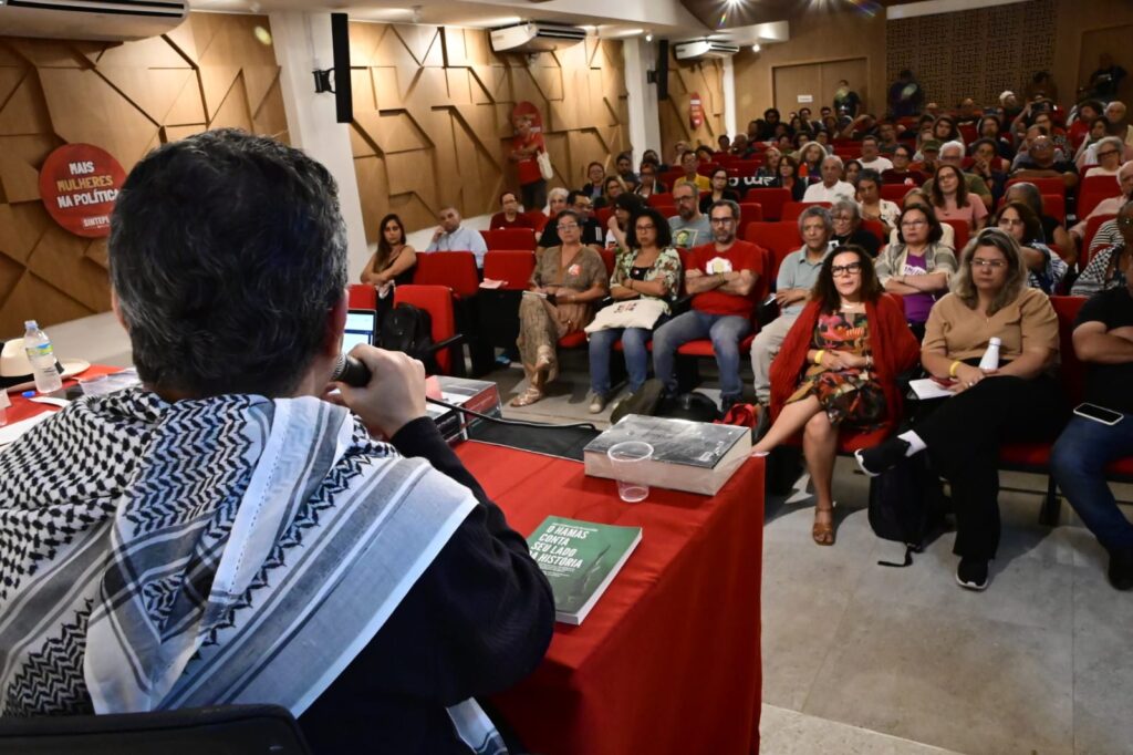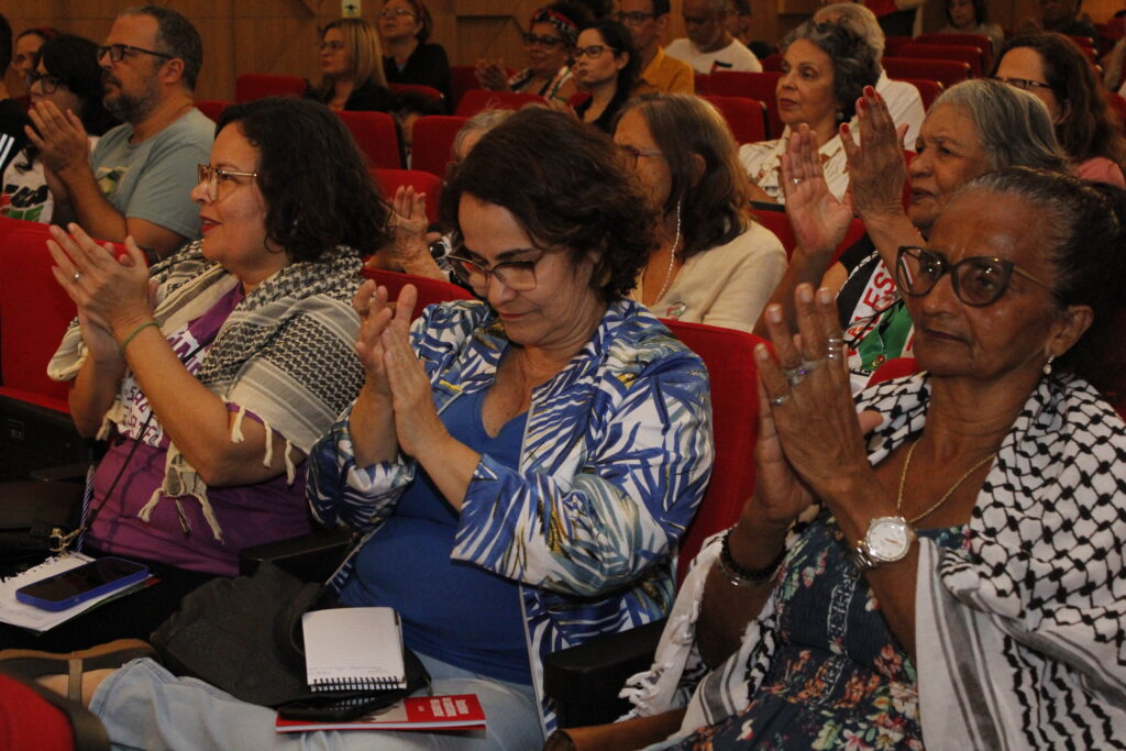 Ao final, os debatedores responderam perguntas da plateia, que contou com lideranças sindicais e políticas, além dos representantes de movimentos sociais. Todos apoiando a luta por uma “Palestina livre, do rio ao mar”, como entoou o público em vários momentos do encontro.