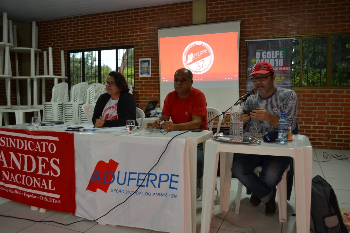 Outro importante informe foi sobre o vinda à Aduferpe, no dia 16 deste mês às 14h, do jurista e ex-ministro da Justiça, Doutor Eugênio Aragão, para o fechamento do curso ‘O Golpe de 2016 e o Futuro da Democracia no Brasil’, que apresentará a palestra ‘A destruição da soberania nacional, o judiciário e o golpe de 2016’.
