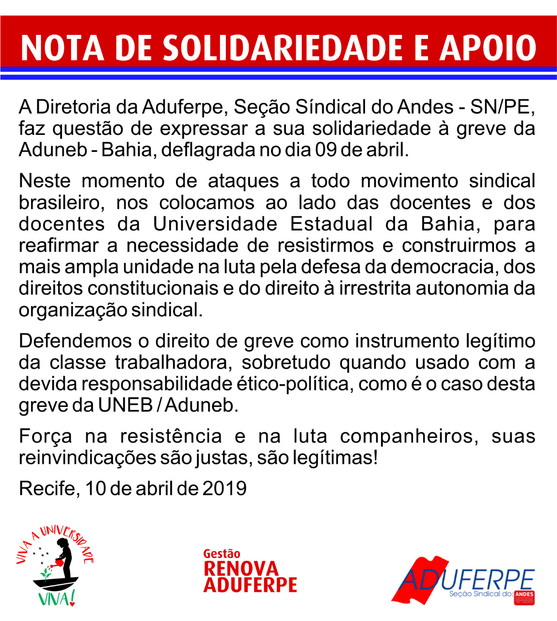 Edital de Convocação Para Eleição da Diretoria da Aduferpe Biênio 2019-2021.