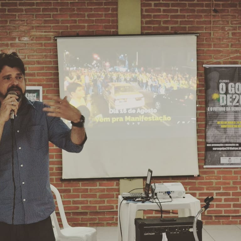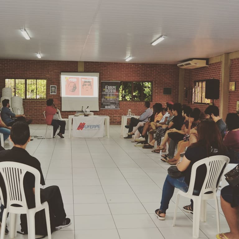 O Papel das Mídias na Construção do Golpe de 2016 e a Resistência das Mídias Alternativas foram os temas do 11º Encontro do Curso O Golpe de 2016 e o Futuro da Democracia no Brasil, realizado pelo Deciso com o apoio da Aduferpe. A aula foi ministrada pelo professor da UFRPE, Júlio Vila Nova, e seus convidados. Júlio fez uma análise crítica do discurso da grande mídia em todas as fases do golpe, destacando o seu papel estratégico na construção e no processo de consumação da ação golpista.
