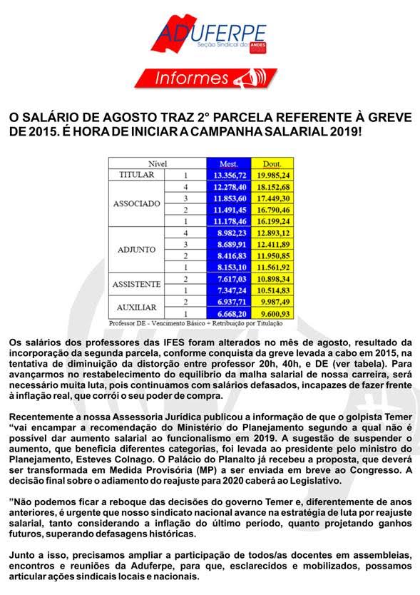 Informe sobre Salários mês de Agosto Aduferpe
