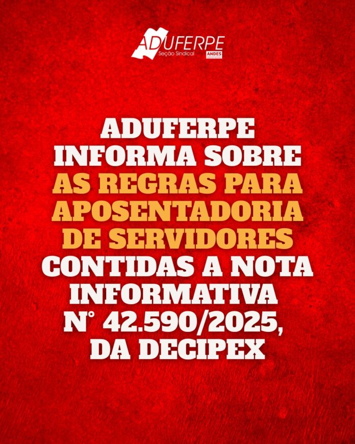 A Aduferpe, Seção Sindical do ANDES-SN, vem informar à categoria que o Governo Federal decidiu que os servidores podem escolher o cálculo mais vantajoso para fins de aposentadoria.