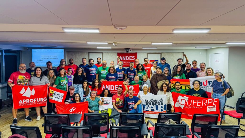 A Aduferpe participou da reunião do Setor das Instituições Federais de Ensino (Ifes) e da diretoria nacional do Andes-SN, nos dias 29 e 30 de agosto, em Brasília, para discutir pautas que impactam toda categoria e a comunidade acadêmica, como a Reforma Administrativa, o não cumprimento integral do acordo de greve de 2024, a Instrução Normativa 71/2025 do MGI, que versa sobre o auxílio-transporte e implica em um mecanismo ilegal de controle de ponto, e a aplicação do Piso Nacional do Magistério para o Ensino Básico, Técnico e Tecnológico (EBTT).