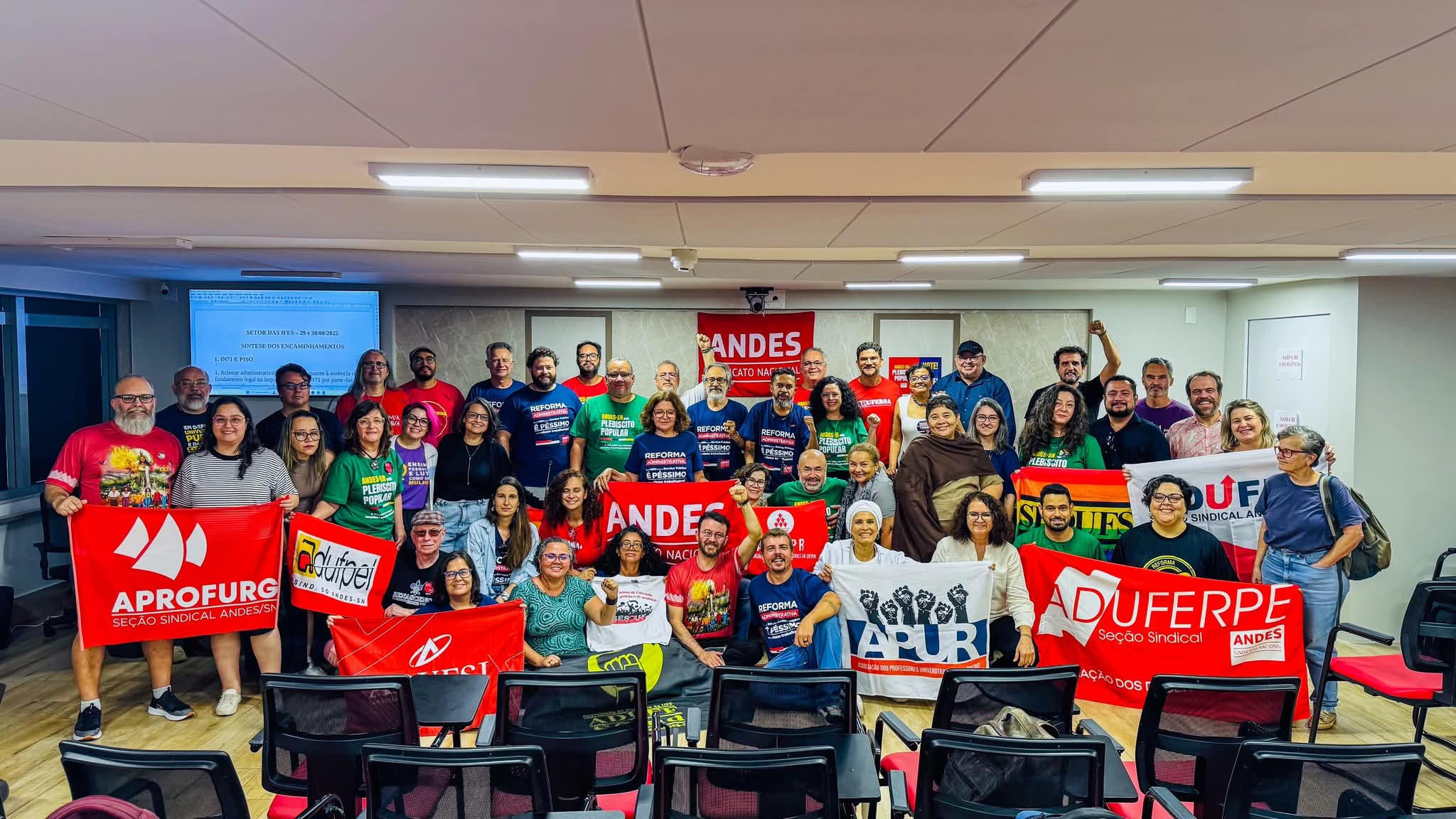 A Aduferpe participou da reunião do Setor das Instituições Federais de Ensino (Ifes) e da diretoria nacional do Andes-SN, nos dias 29 e 30 de agosto, em Brasília, para discutir pautas que impactam toda categoria e a comunidade acadêmica, como a Reforma Administrativa, o não cumprimento integral do acordo de greve de 2024, a Instrução Normativa 71/2025 do MGI, que versa sobre o auxílio-transporte e implica em um mecanismo ilegal de controle de ponto, e a aplicação do Piso Nacional do Magistério para o Ensino Básico, Técnico e Tecnológico (EBTT).