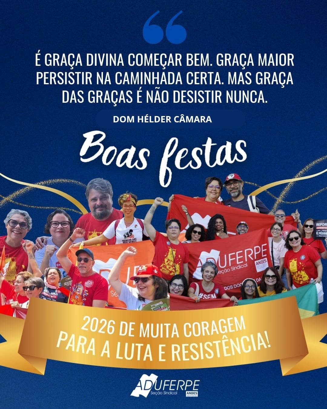 ✨ Que o Ano Novo que se aproxima seja marcado por coragem, luta e resistência, fortalecendo a organização da categoria e a defesa dos direitos, da democracia e dos serviços públicos.