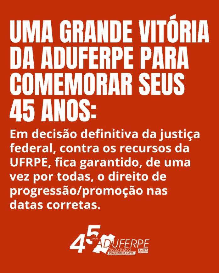 A Justiça Federal em Pernambuco reconheceu, em decisão definitiva, o direito de docentes da Universidade Federal Rural de Pernambuco (UFRPE) à concessão de progressões e promoções funcionais com efeitos financeiros retroativos à data em que foram preenchidos os requisitos legais.